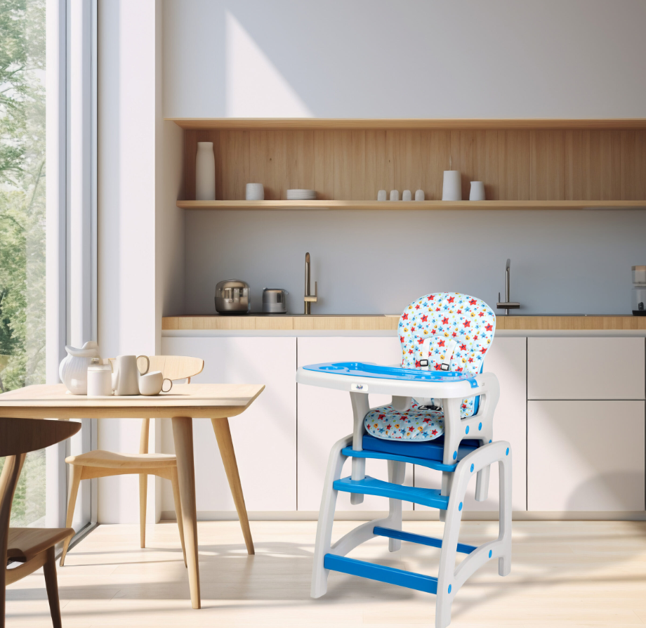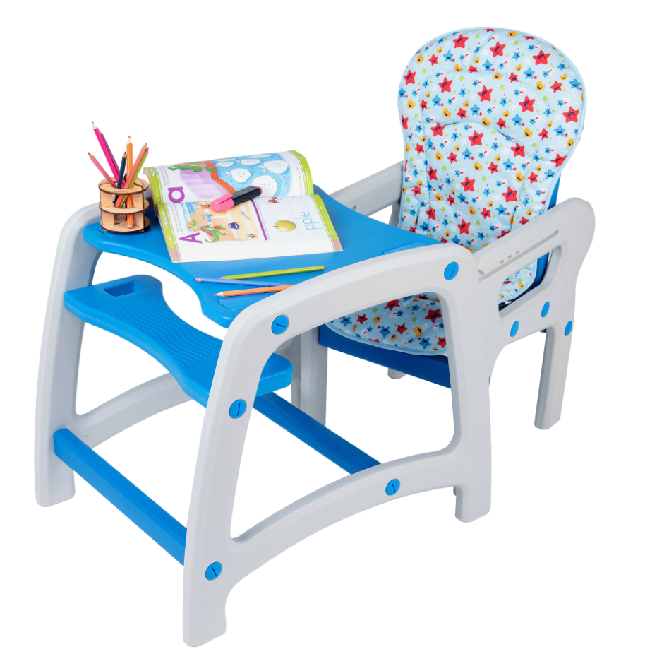 Scaunul de masa multifunctional Juju Eat&Play a fost creat pentru a combina utilul cu placutul. Este considerat un model inovator, cu o utilizare indelungata, putand fi folosit de copii cu varsta cuprinsa intre 6 luni si 6 ani. Functia sa de baza, scaun de servit masa, este recomandata pana la varsta de 4 ani (aproximativ 20 kg). Ca o a doua utilitate, scaunul si masa pot fi utilizate separat, pentru desen, scris si alte activitati, pana la varsta de 6 ani. Masuta de desen este prevazuta cu suport pentru pahar si creioane sau acuarele, pensule, etc. Eat&Play este prevazut cu husa si tavita detasabile si lavabile. Hamurile de siguranta cu prindere in 5 puncte garanteaza siguranta copilului dumneavoastra in timpul mesei. Avantajele majore ale acestui scaun fata de modelele pliante sunt stabilitatea si rezistenta in timp. Scaunul este certificat in conformitate cu normele europene EN 14988-1+2:2006+A1:2012. Produsul beneficiaza de garantie pe o perioada de 2 ani de la data cumpararii.