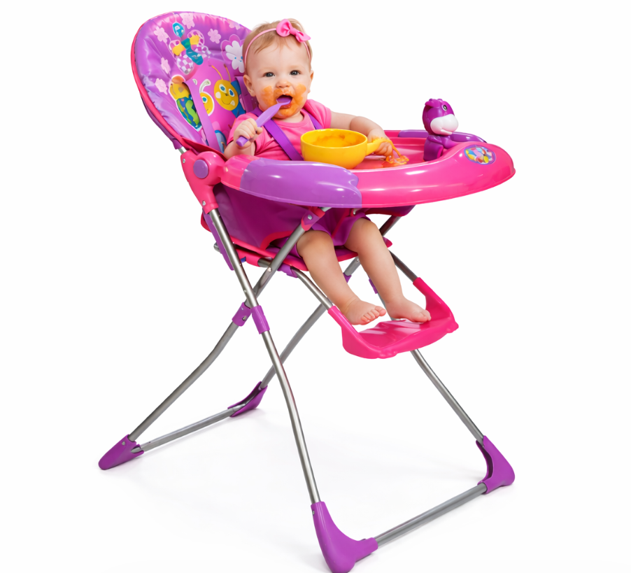 Este prevazut cu centura de siguranta, iar masuta este detasabila.