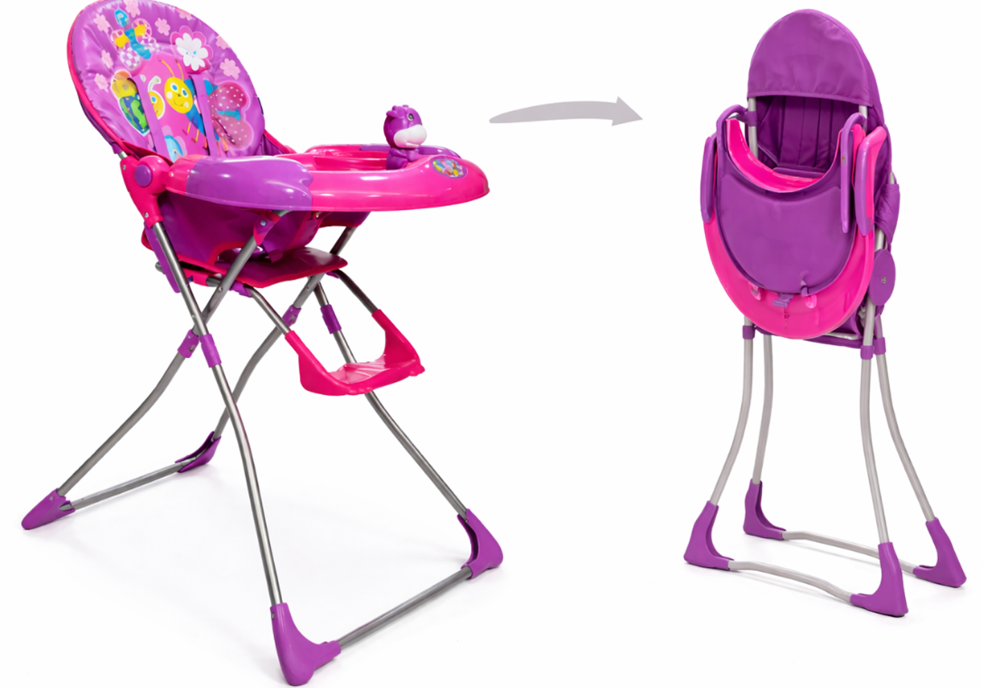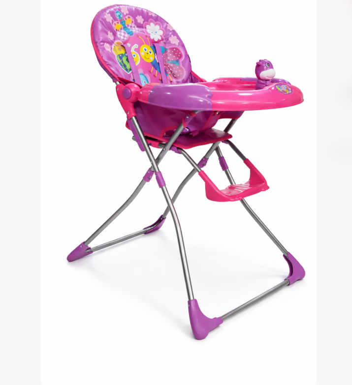 Scaun de masa pentru copii si bebe, Pliabil, Centura de siguranta, Masuta detasabila, Cu jucarie si suport de pahar, Roz