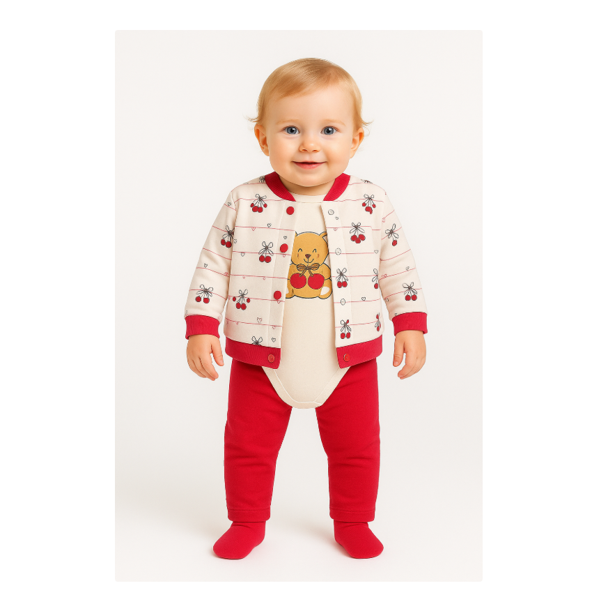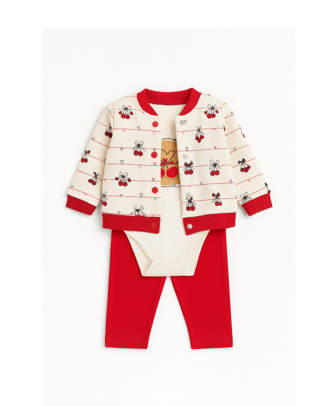 Compleu 3 piese, cu body, Ursuletul la cirese
