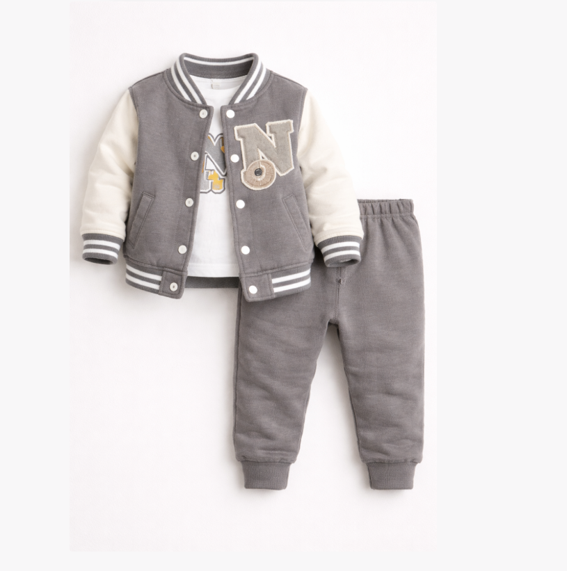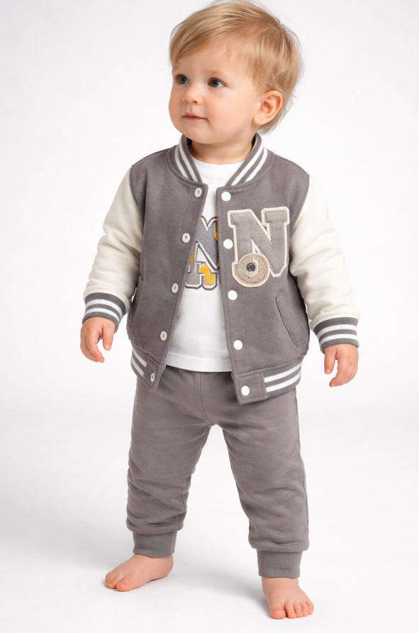 • Pantaloni confortabili: Cu o croială lejeră, pantalonii asigură libertate de mișcare, ideală pentru joacă și explorare.