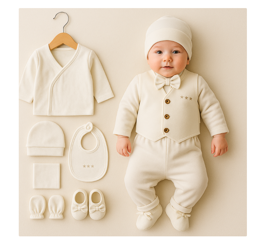 - Pantaloni: Comozi și practici, ideali pentru joacă și somn.
